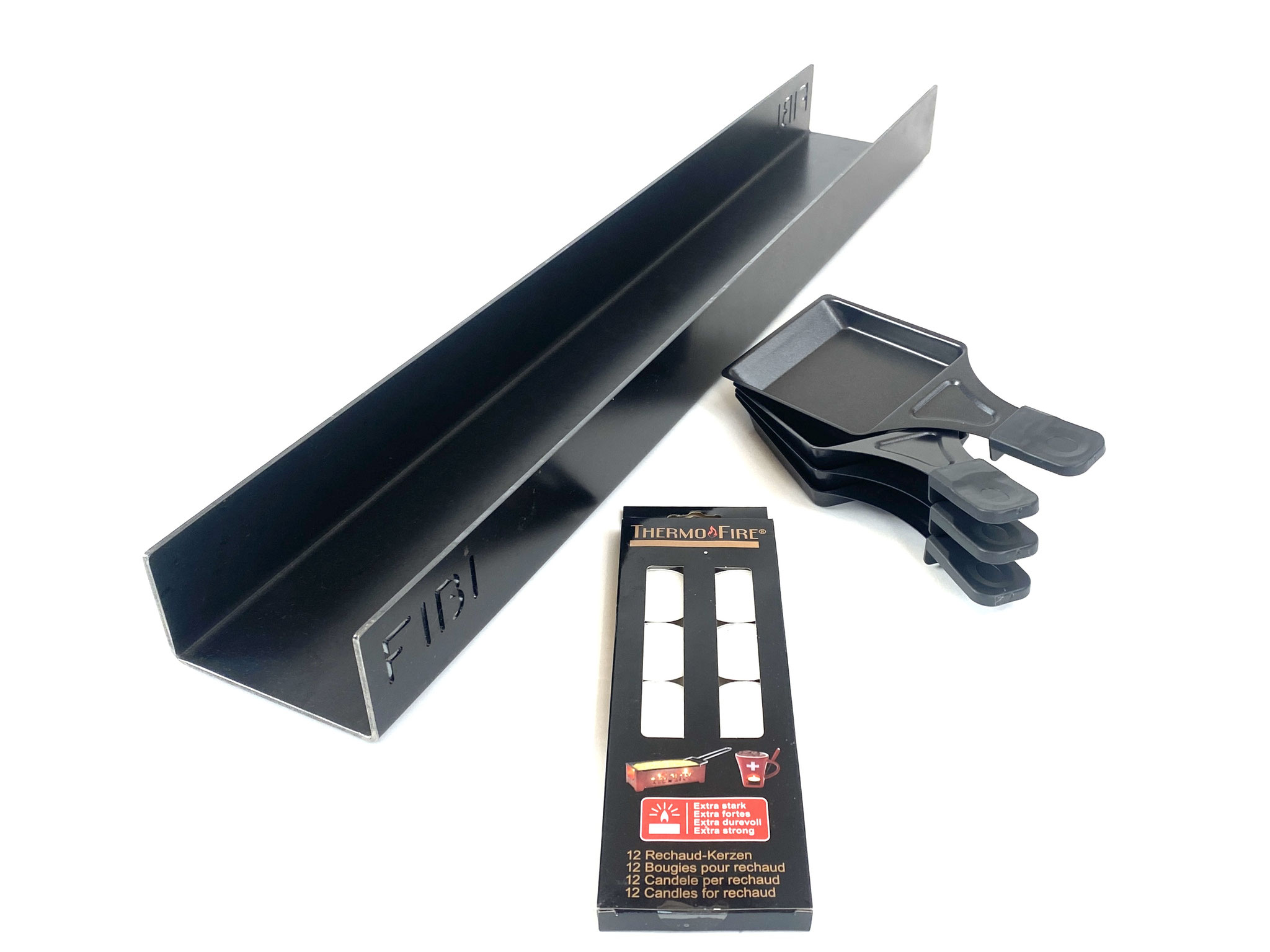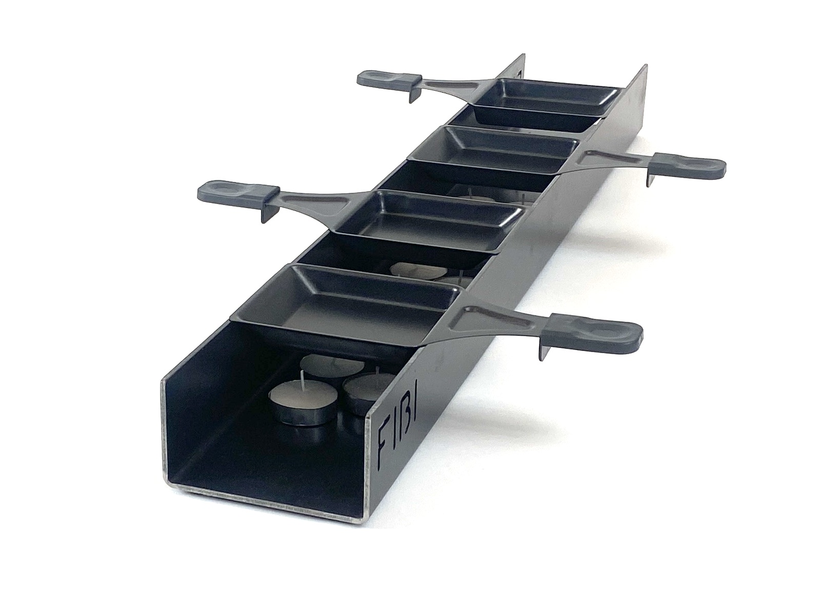 U-Profil aus Rohstahl; beliebig verlängerbar; einfacher geht's nicht; Betrieb mit Rechaud-Kerzen